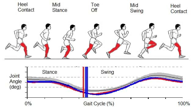 3D motion analysis provides a high precision method of identifying running gait dysfunction, and associated links with joints and muscles surrounding the hip, pelvis, knee, ankle and foot.